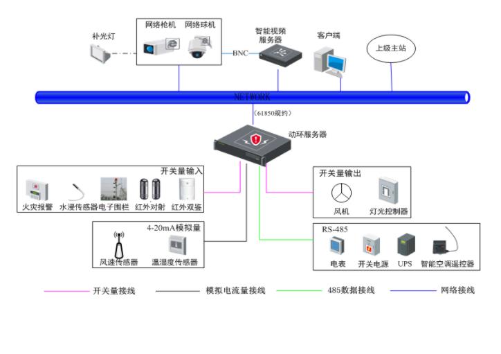 ●支持RS-485接入外部設備,包括:UPS、電量表、開關電源、有毒氣體探測器、空調控制器、溫濕度傳感器、變壓器溫顯表等、風速傳感器、消防主機;